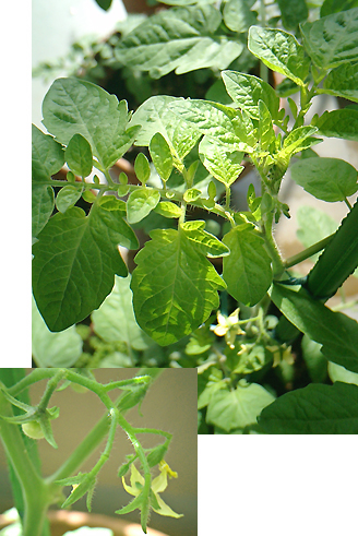 5/9. ミニトマトに小さな実がついているのを発見〜^^
