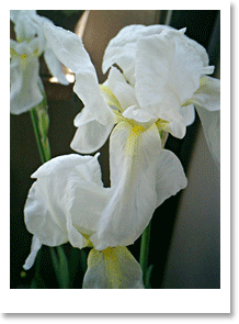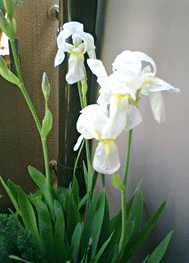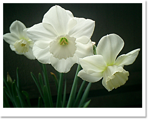スイセン(ベロナ) 真っ白で大きくてすごく綺麗です。鼻を近づけてかいでみると、かすかに上品な香りがします。2個の球根から5つの花が咲きました。 |