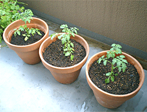 ミニトマト 4/19.苗を3株植えました。(3鉢目、ちょっと土が足りてないけど)これで今年の夏はトマト食べ放題〜だといいなぁ。 |
